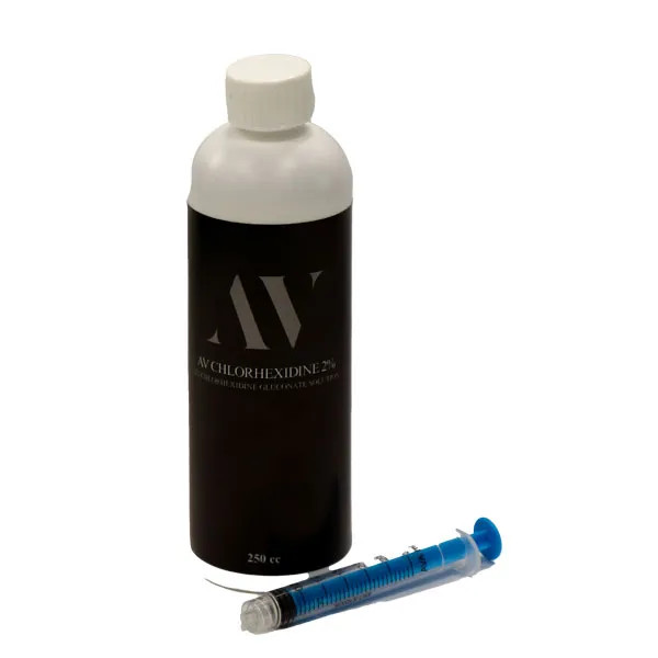 محتویات بسته: یک عدد بطری ۲۵۰ میلیلیتری کلرهگزیدین به همراه یک عدد سرنگ